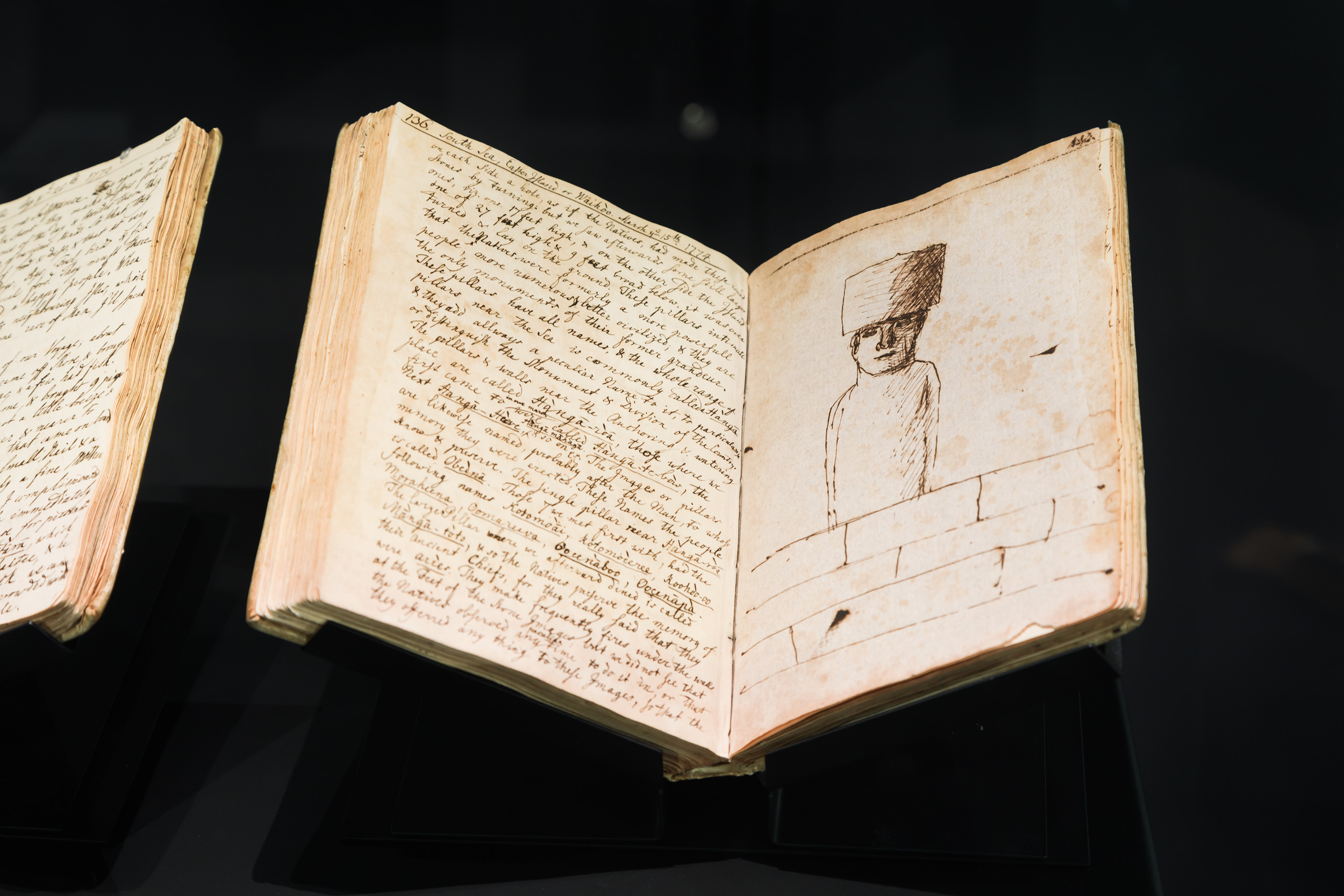 Bordjournaleintrag vom 15. März 1774: Johann Reinhold Forster hält die monumentalen Basalt-Skulpturen (Moai) der Osterinsel in seinem Journal auf einer Skizze fest und erkundet als erster Europäer die Namen der rätselhaften Säulen.