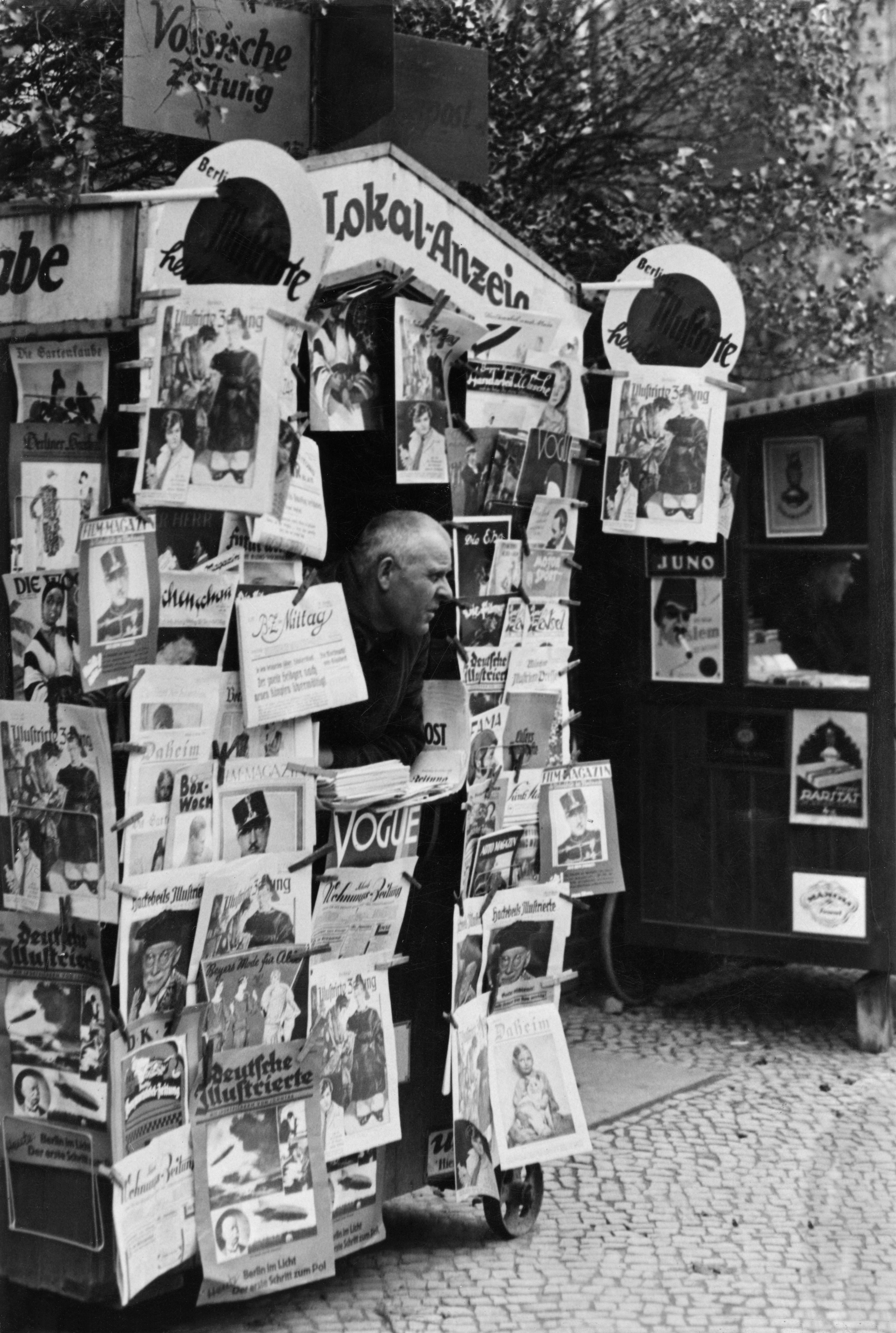 Friedrich Seidenstücker, Fahrbarer Zeitungskiosk an der Hauptstraße in Schönberg, Berlin 1928. © bpk-Fotoarchiv / Friedrich Seidenstücker.